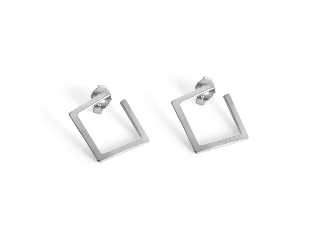 Silver dangle earrings Geometry square smaller