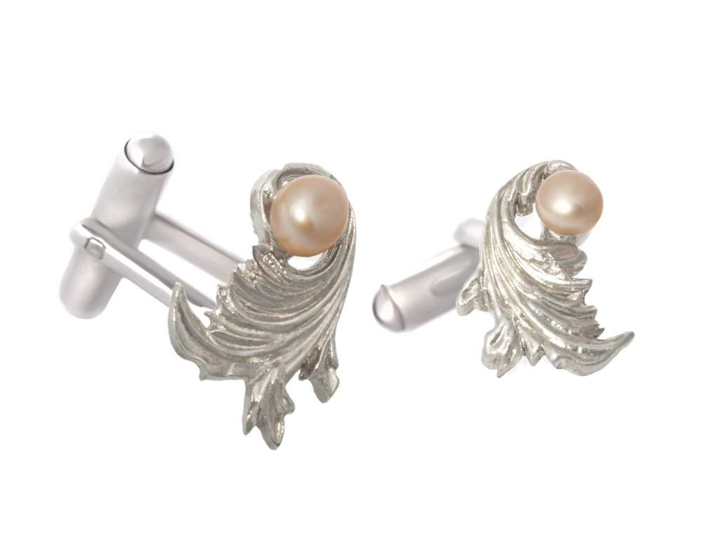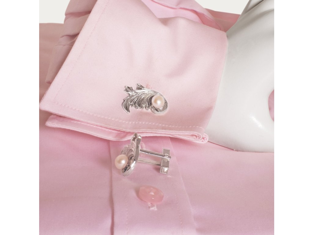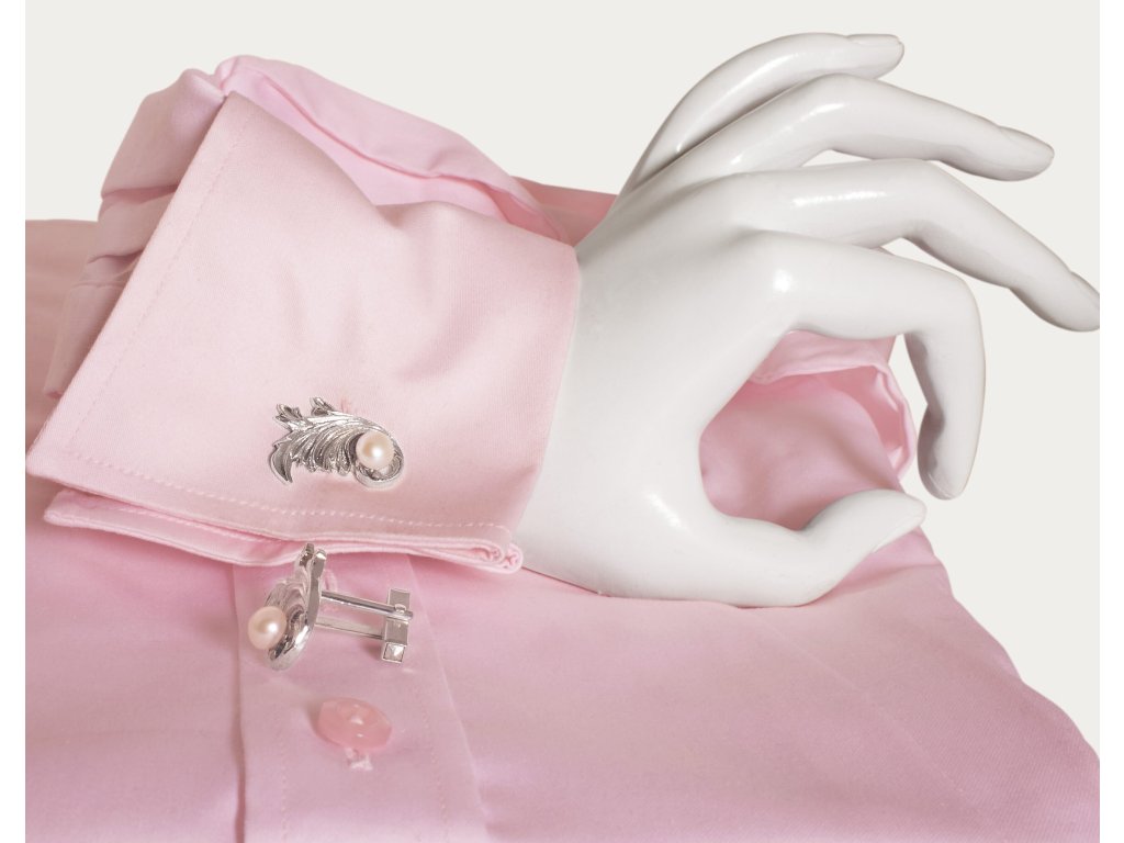 The buttons have a swivel end for better fitting into the shirt. Buttons can be worn by both ladies and gentlemen. It can be shortened or extended upon request. Baroque ornaments are 2 cm large and are decorated with real river pearls. Ag 925/1000, weight 11.64 grams. They are axially balanced - I go in the opposite direction. Hallmarked.