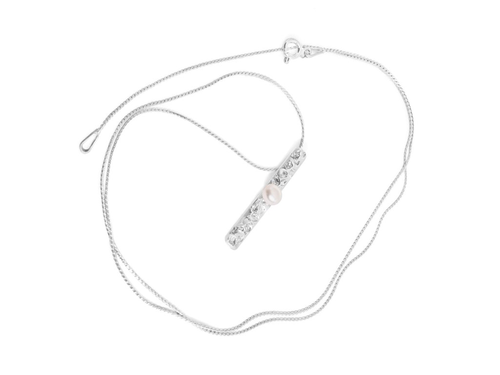 The necklace symbolizes flowing drops. Imagine what a drop will create as it flows down the surface. The harmonious effect of water will accompany you every step of the way. It weighs 4 grams. Ag 925/ 1000. The length of the drop is 2 cm. You choose the length of the chain or the surface treatment. I chose the length of the necklace so that it could be put on over the head and end at the level of the ribcage. If you choose a shorter length, it will be a classic fastening.