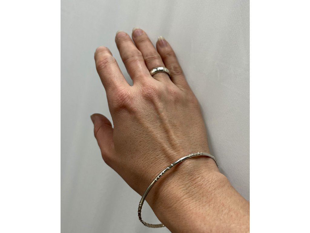 Why can't partners wear jewelry from the same collection? In this way, the collection underlines and confirms your mutual harmony. The size of the bracelet is universal, but for a better fit, please indicate the circumference of your hand. The length of the bracelet is 18 cm. The thickness of the bracelet is 0.4 cm. The bracelet weighs 13.06 grams.