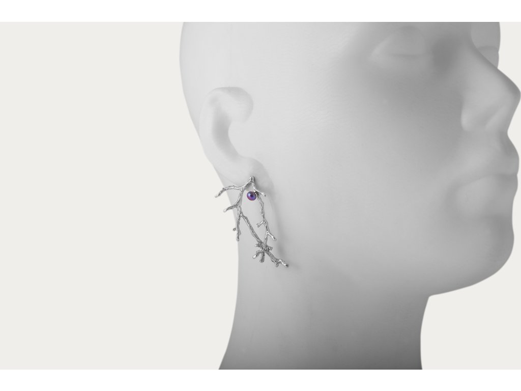 Gold-plated Berries dangle earrings with pearl are axially/laterally balanced. The length of the branch is 4.6 cm. Weight 10 grams. The length of the stud is 1.3 cm. It can be adjusted on request.