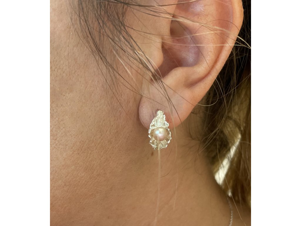 The clam is 3 cm long. The earring has a French flap closure. This is a very secure closure that won't open easily.