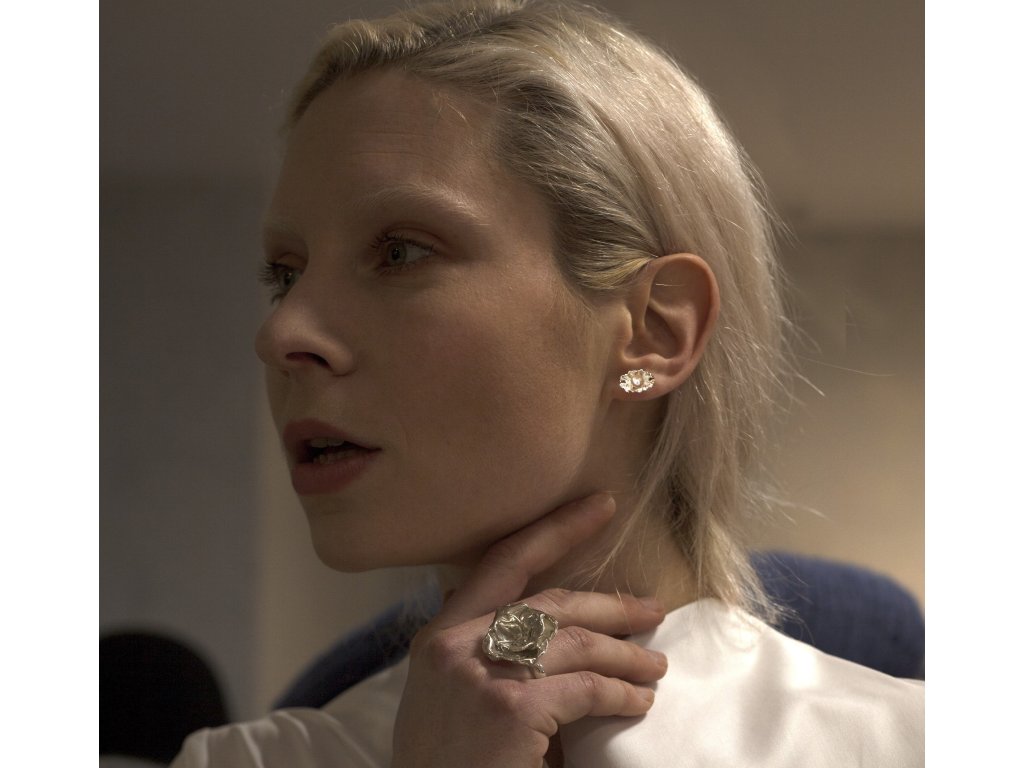 The earrings are made of silver. It is possible to make them from gold or with surface treatment. You choose the size in the next step of the order.