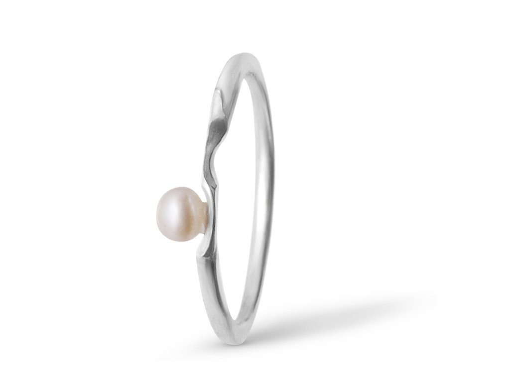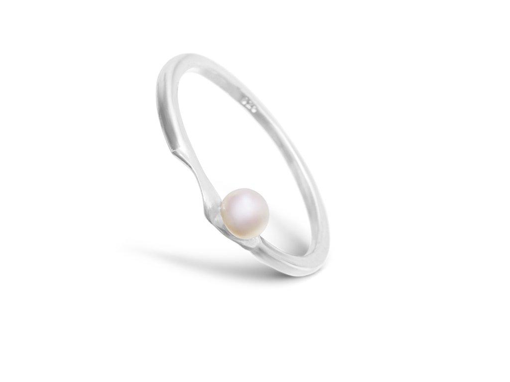 Silver minimalist split ring with pearl