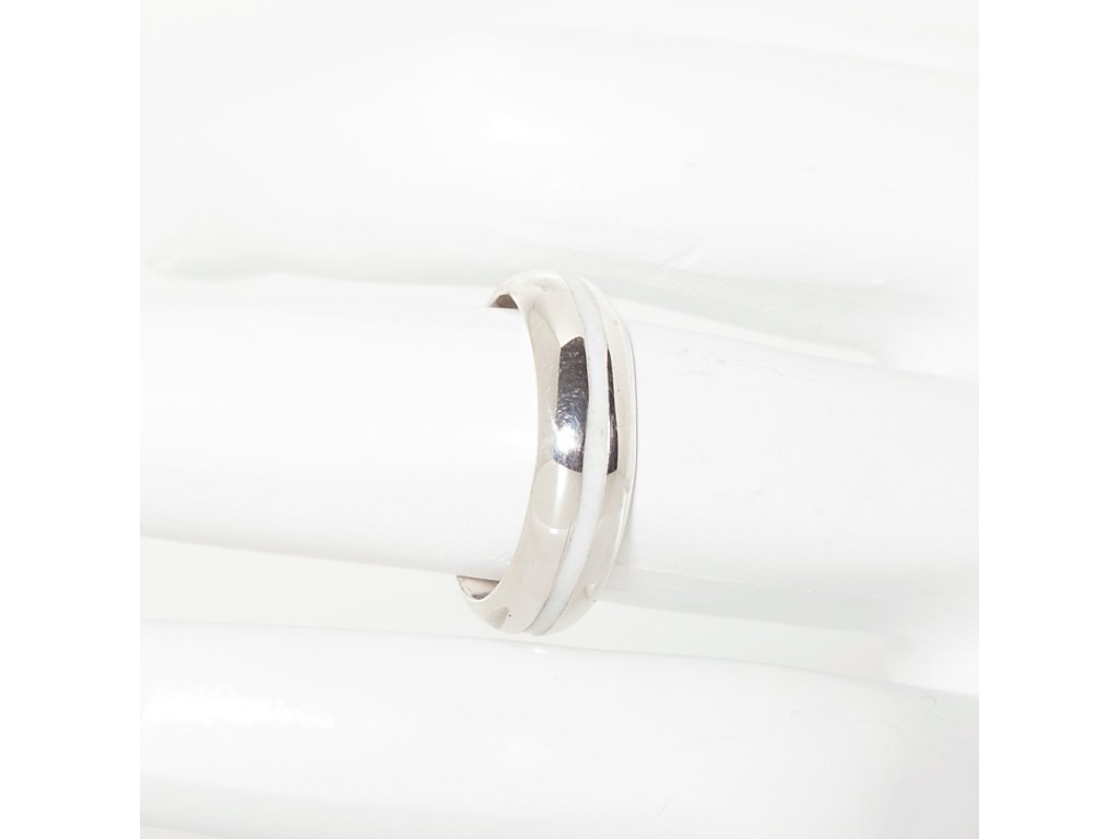 The Unisex Silver Ring Stripe with a stripe is made of pure 925/1000 silver. The width of the ring is 4.8 cm. It is possible to make it wider or narrower. The central part is decorated with a strip of white pearl ceramic paint.