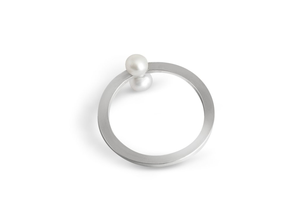 The ring is made of a flat ring with two freshwater pearls set on it. You can choose their color and ring size.