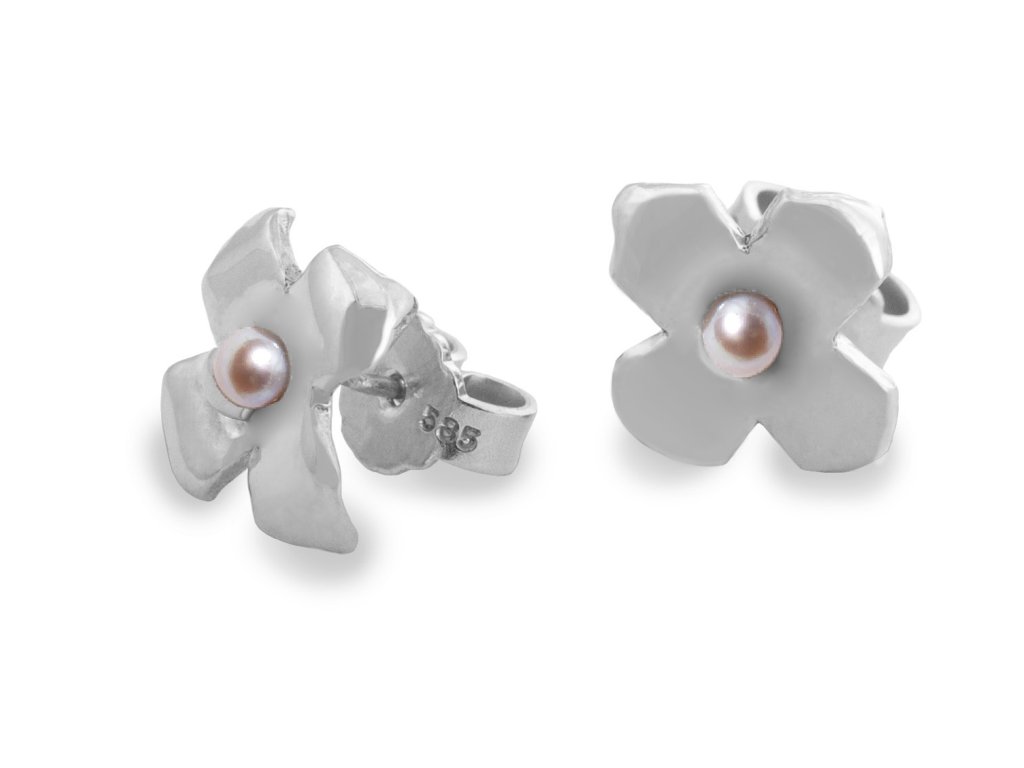The flower is 1 cm large. The earrings are made of silver. It is possible to make them from gold, matte or with surface treatment or several flowers together.