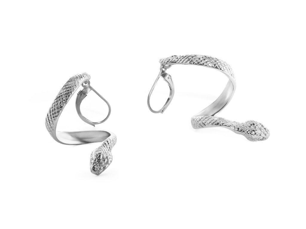 Earrings in the shape of a snake is made of silver 925/ 1000 weighing 8 grams. It can be made in another color of gold or with surface treatment.