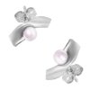 Split silver earrings with pearl