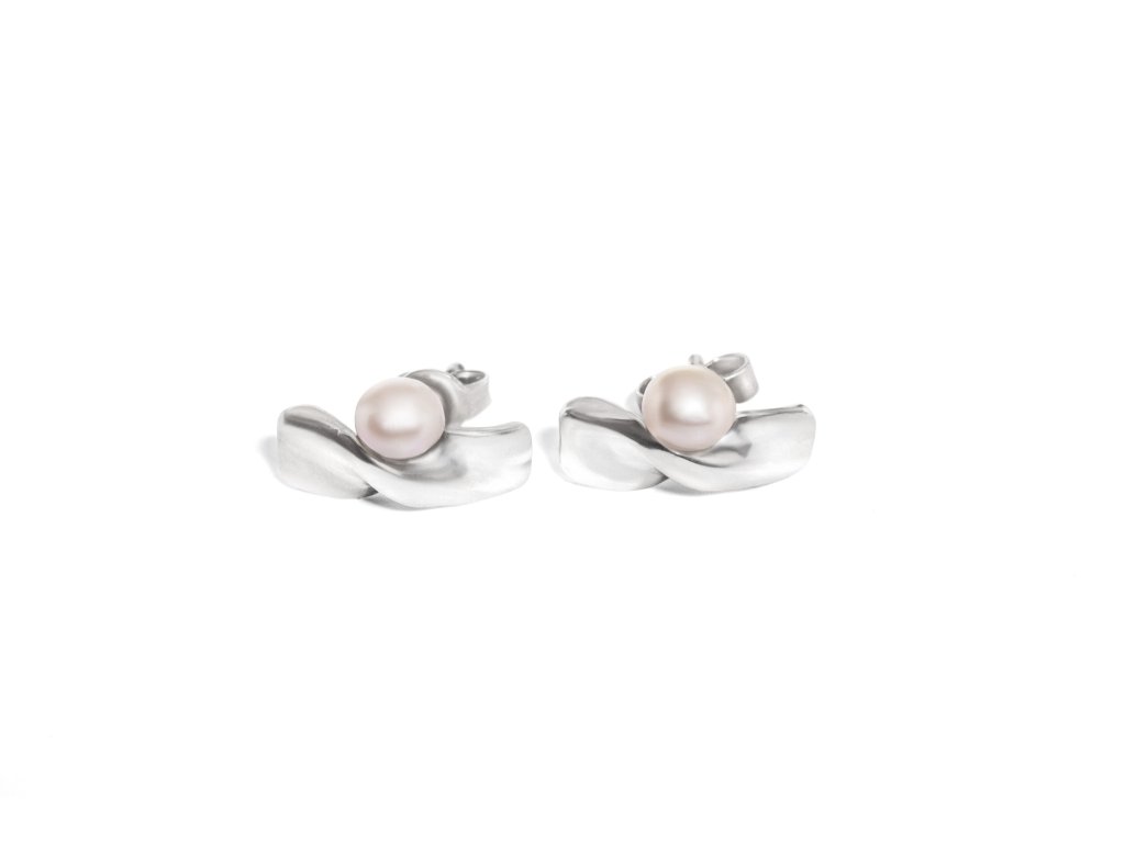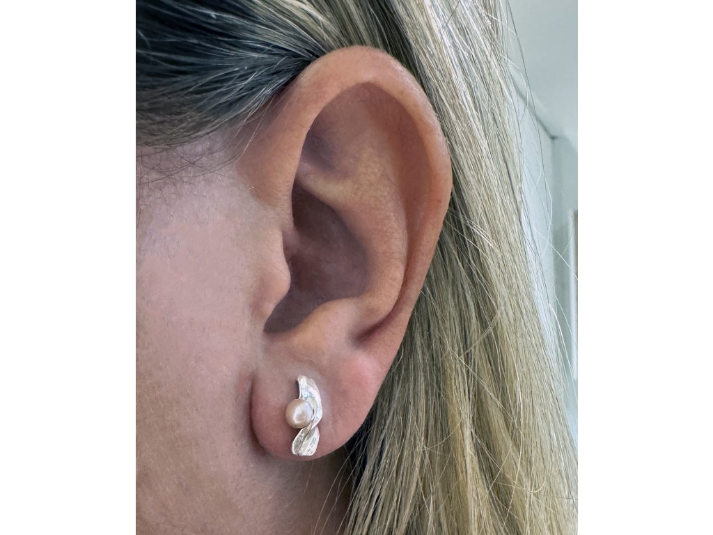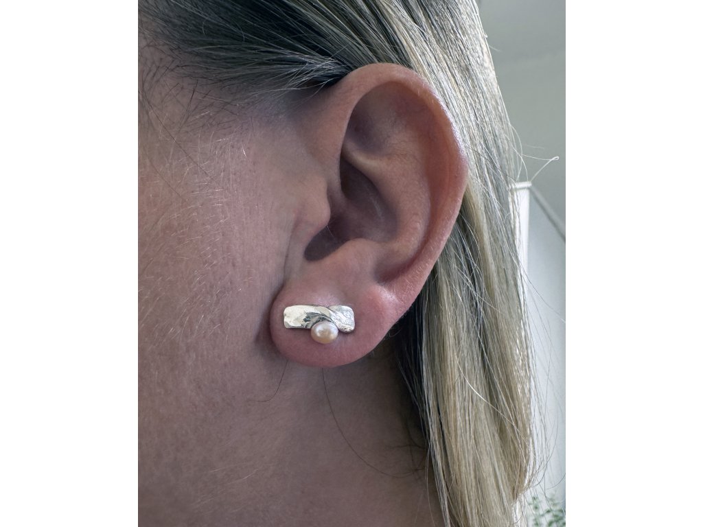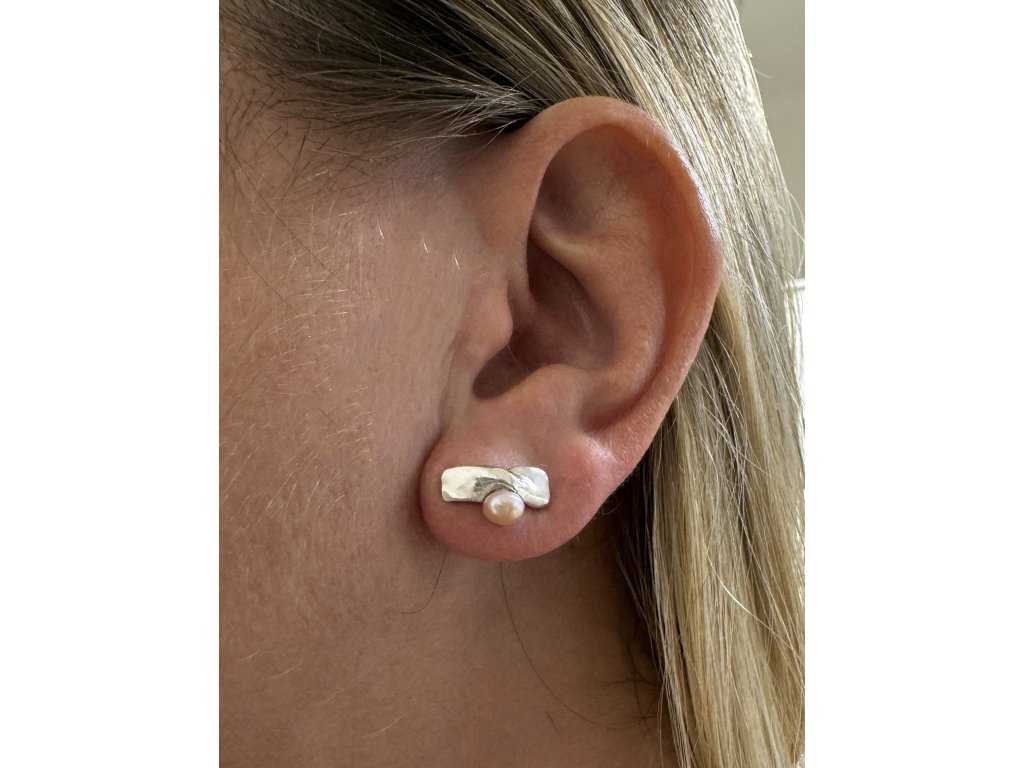 Split silver earrings with pearl
