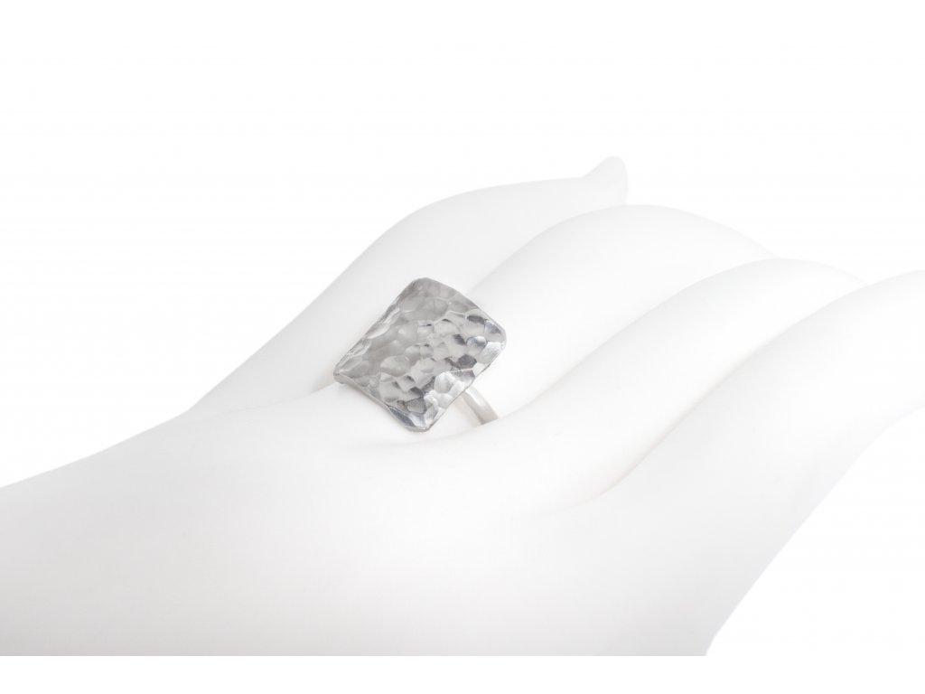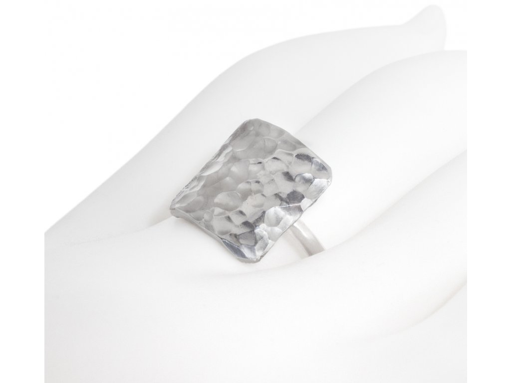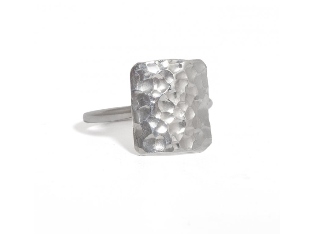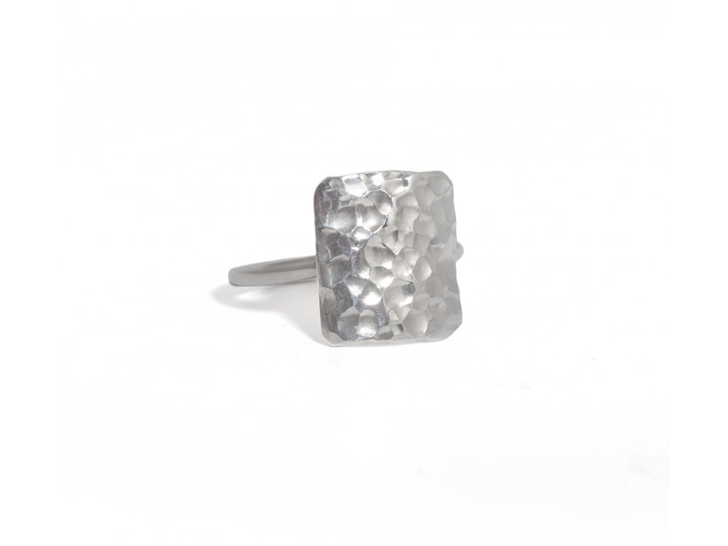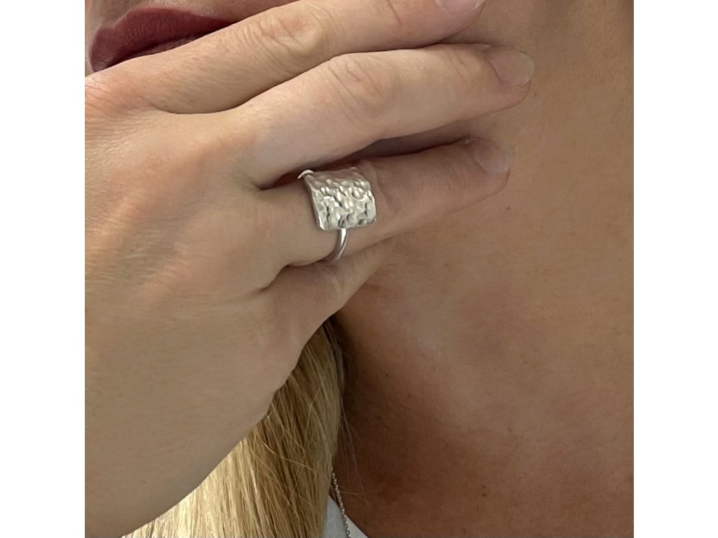 Hammer hammered silver square ring