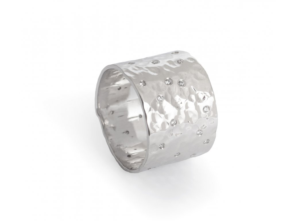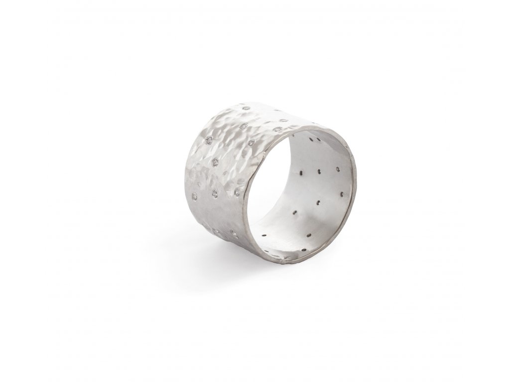 The ring is 2 cm wide. The width can be adjusted as desired. The ring has diamonds with a diameter of 1 mm.