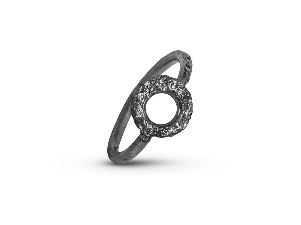 Silver black conical hammered ring circle