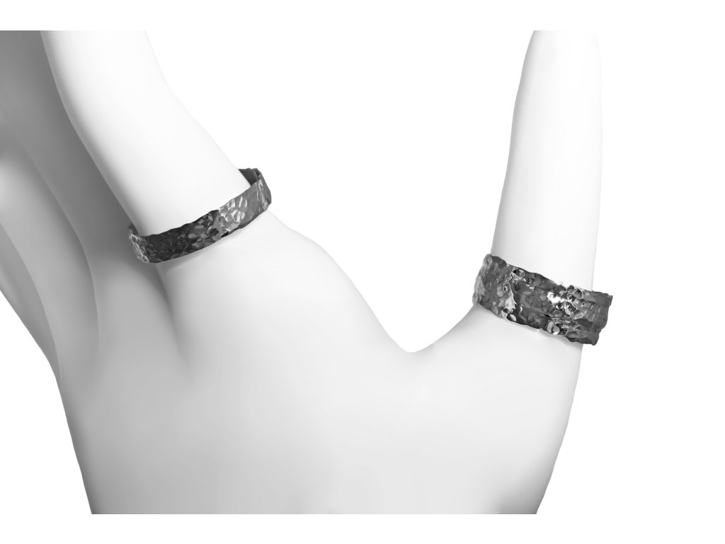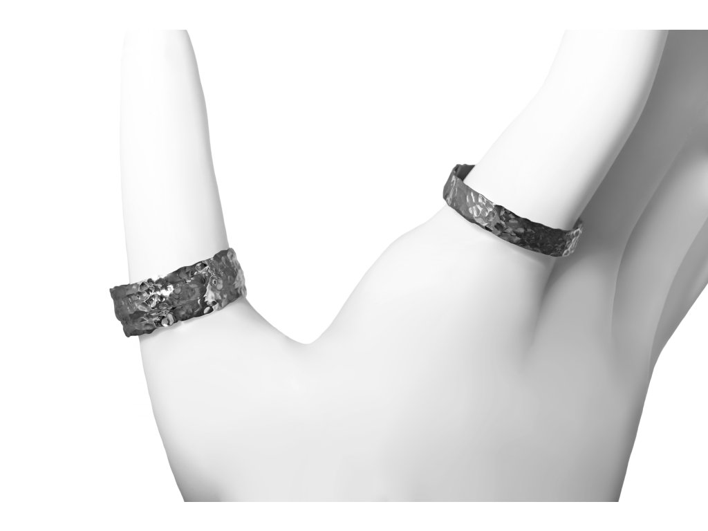 The rings are decorated by hammering, the surface has a dimpled structure.
