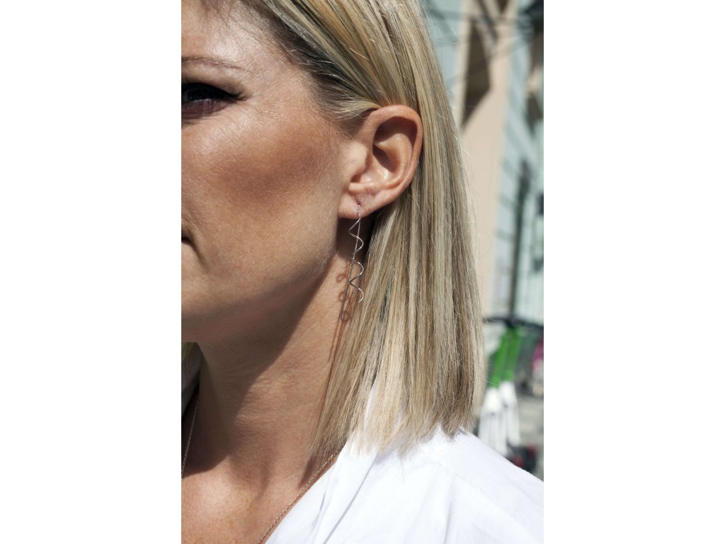 Celková délka náušnice je 11 cm, délka spirály je 5 cm. Na přání lze zkrátit. Řetízek se protáhne uchem a délku si určíte sami podle nálady. Ag 925/100 a váha je 3 gramy.