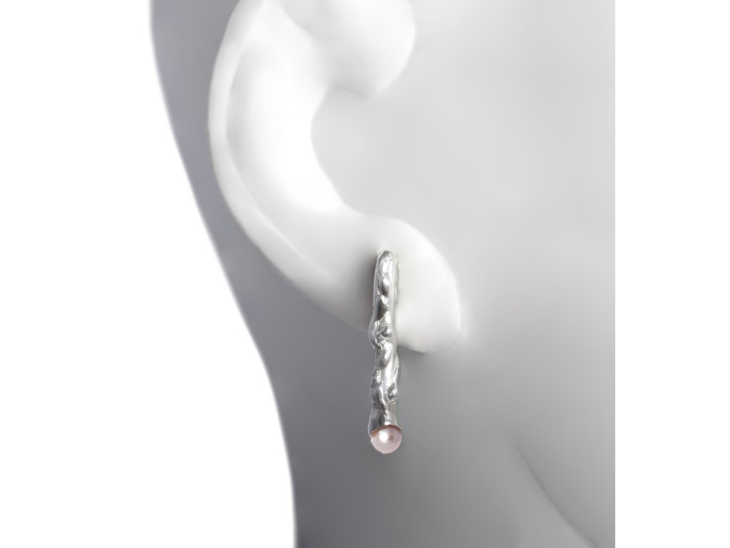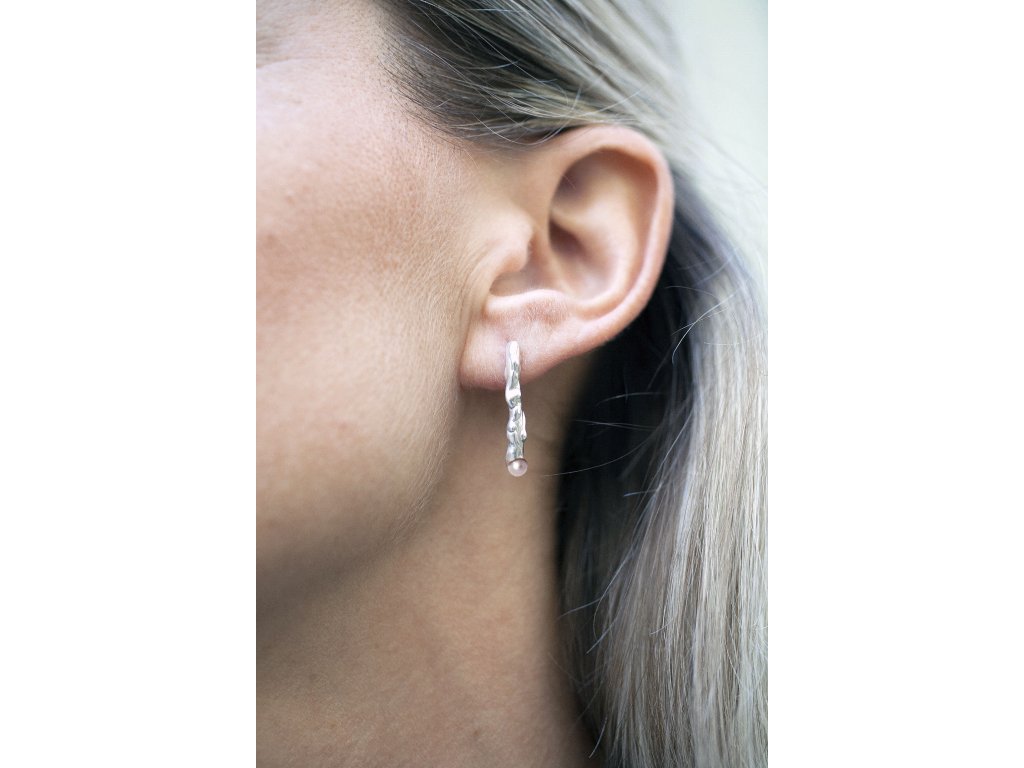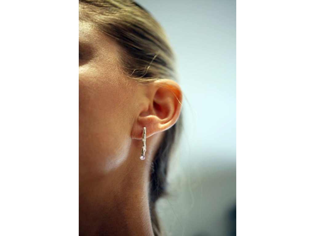 Tyto náušnice symbolizují stékající kapky. Představte si, co utvoří kapka, která stéká po povrchu dolů. Harmonický efekt vody vás bude provázet na každém kroku. Váží 2 gramy, nejsou těžké na běžné nošení. Ag 925/ 1000. Délka náušnice jsou 2 cm. Zapínání je na puzetu, ale je možné vyrobit na přání šroubovací uzávěr nebo závěsné zapínání s pojistkou. V kolekci najdete i drobnější verzi náušnice.