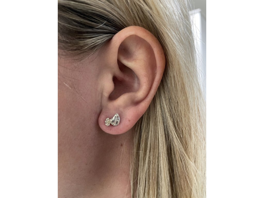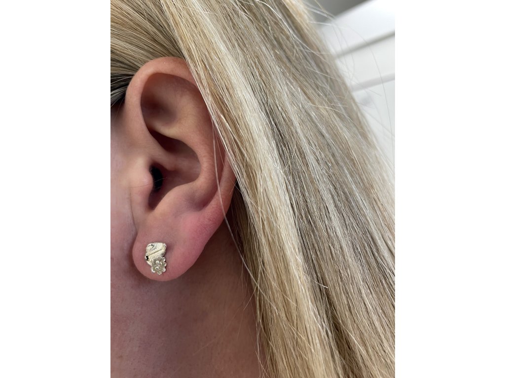 Tato náušnice je zmenšenou variantou kolekce. Délka i šířka je 0, 7 cm. Náušnice jsou osově / stranově vyvážené. Váha 2,4 gramů. Puzeta je 1cm dlouhá. Je možno upravit na přání nebo dát jiný typ zapínání.