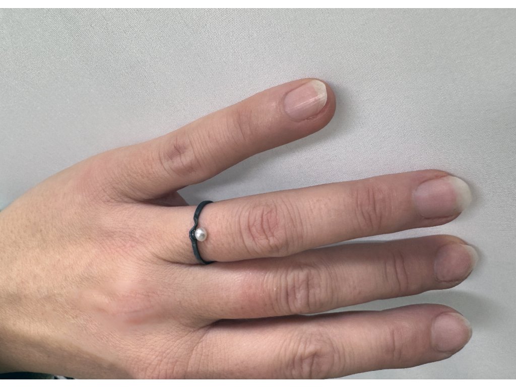 Prsten je vyroben ze stříbra. Šířka prstenu v nepropletené části jsou 1,5 mm.