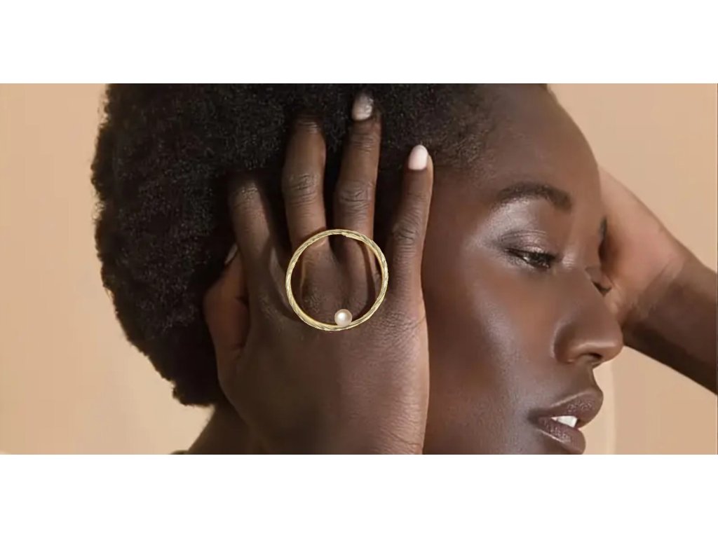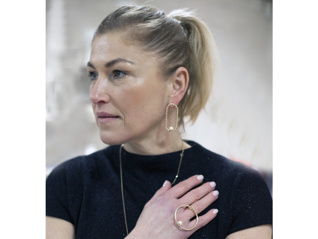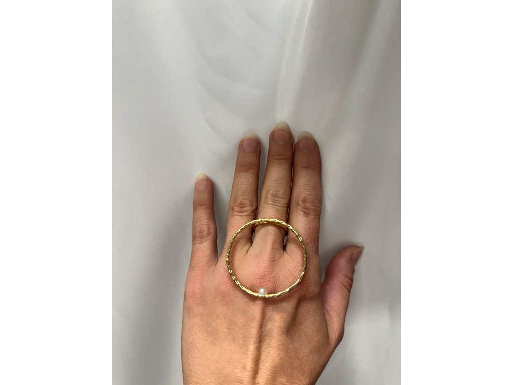 Dámský zlatý prsten Implicate přes celou ruku s perlou