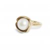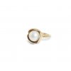 Dámský zlatý prsten s květem a perlou Bowpearls úzký