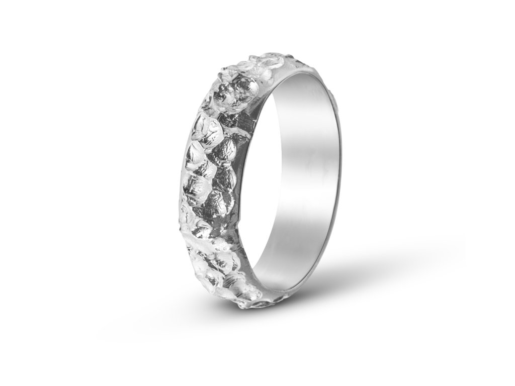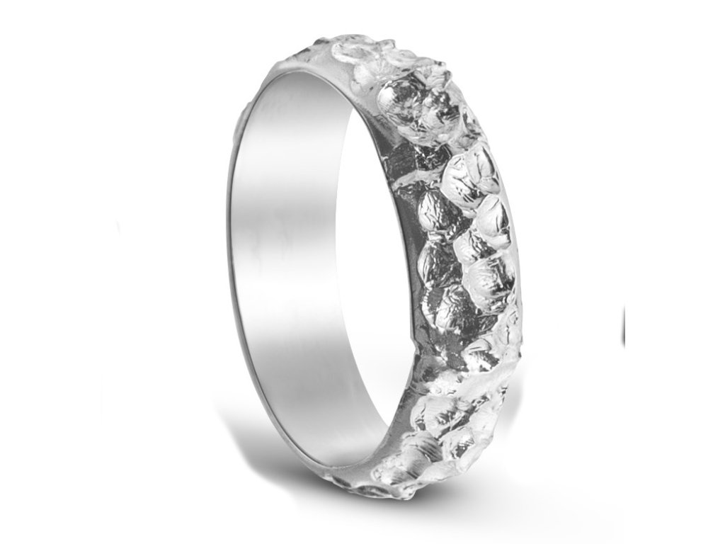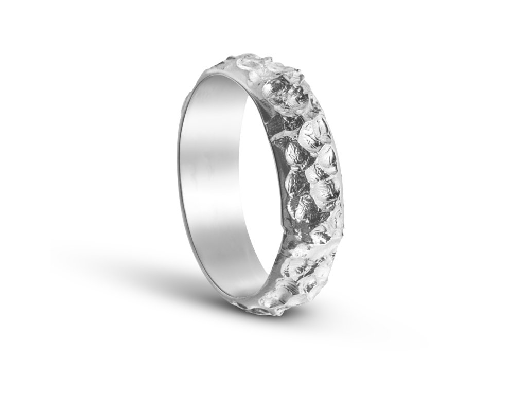 Tento prsten symbolizuje hladinu, na kterou padají kapky. Představte si, co utvoří kapka, která spadne na hladinu. Harmonický efekt vody vás bude provázet na každém kroku. Prsten je široký 1 cm. Váží 3,5 gramu, není těžký na běžné nošení. Ag 925/ 1000. Hodí se pro muže, třeba jako snubní prsten nebo pro ženy, které se nebojí vyčnívat z davu.