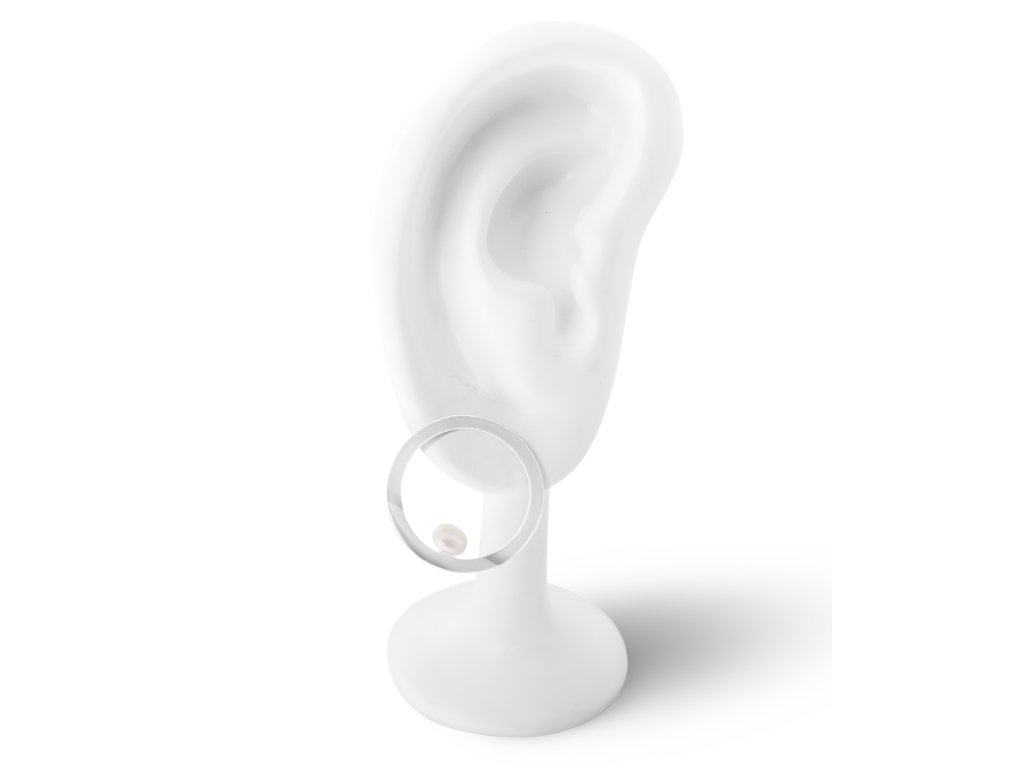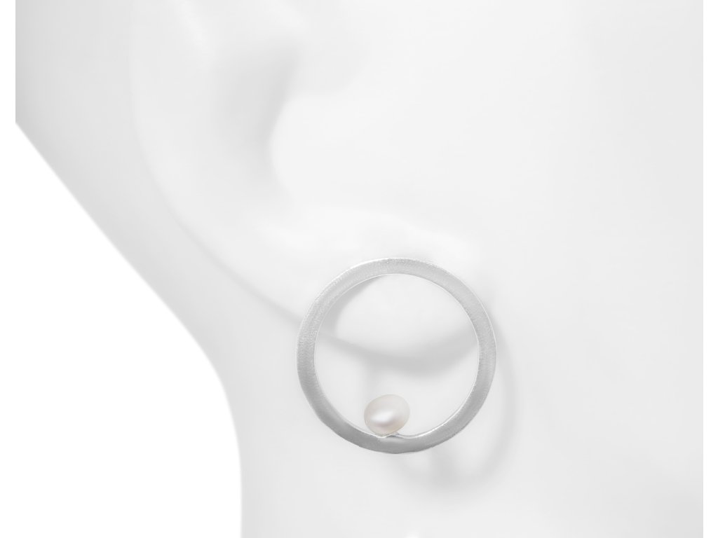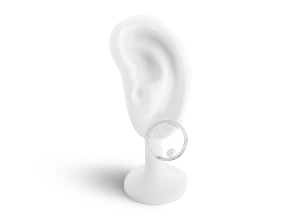 Je vytvořene z plochého kroužku, na kterém jsou usazeny dvě sladkovodní perly. Jejich barvu si můžete zvolit. Zapínání je na puzetu.