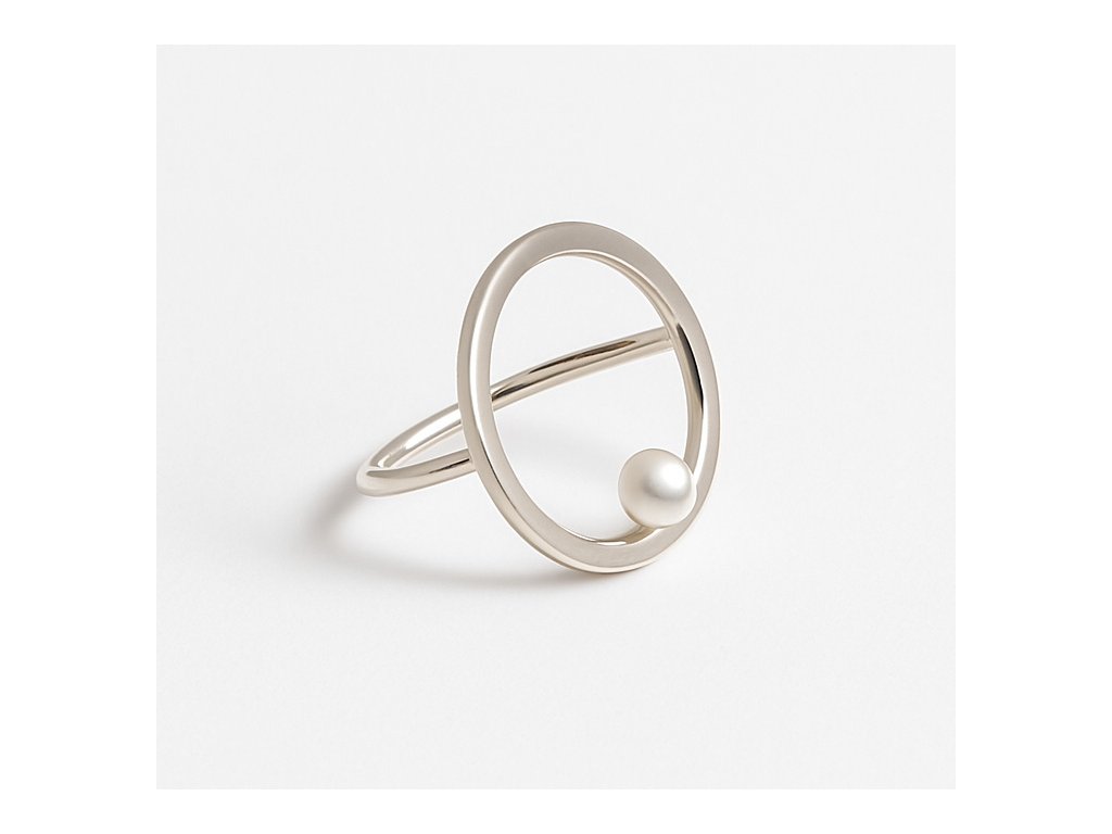 Prsten je vytvořen z Ag 925/ 1000. Ozdoben je plochým kroužkem, na kterém je usazena dvě sladkovodní perla. Jejich barvu i velikost prstenu si můžete zvolit. Kruh má průměr 2,4 cm. Váha 3 gramy. Puncováno