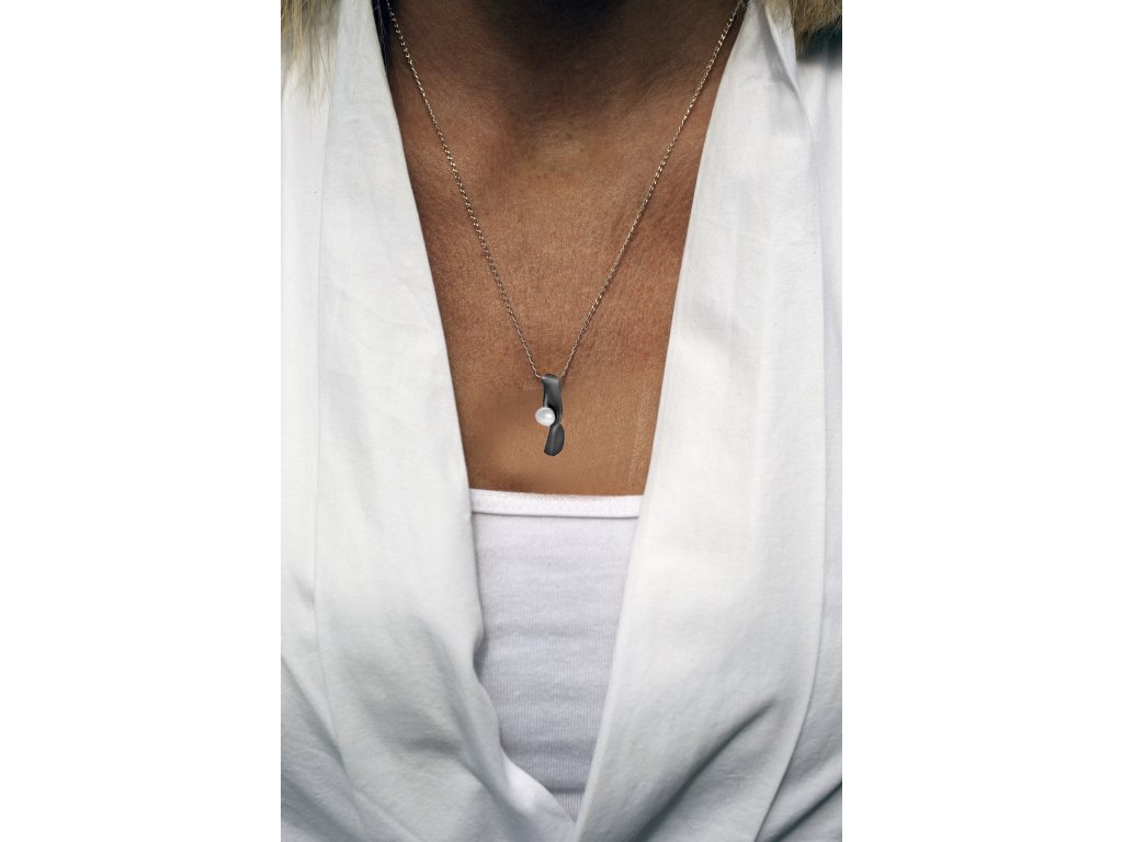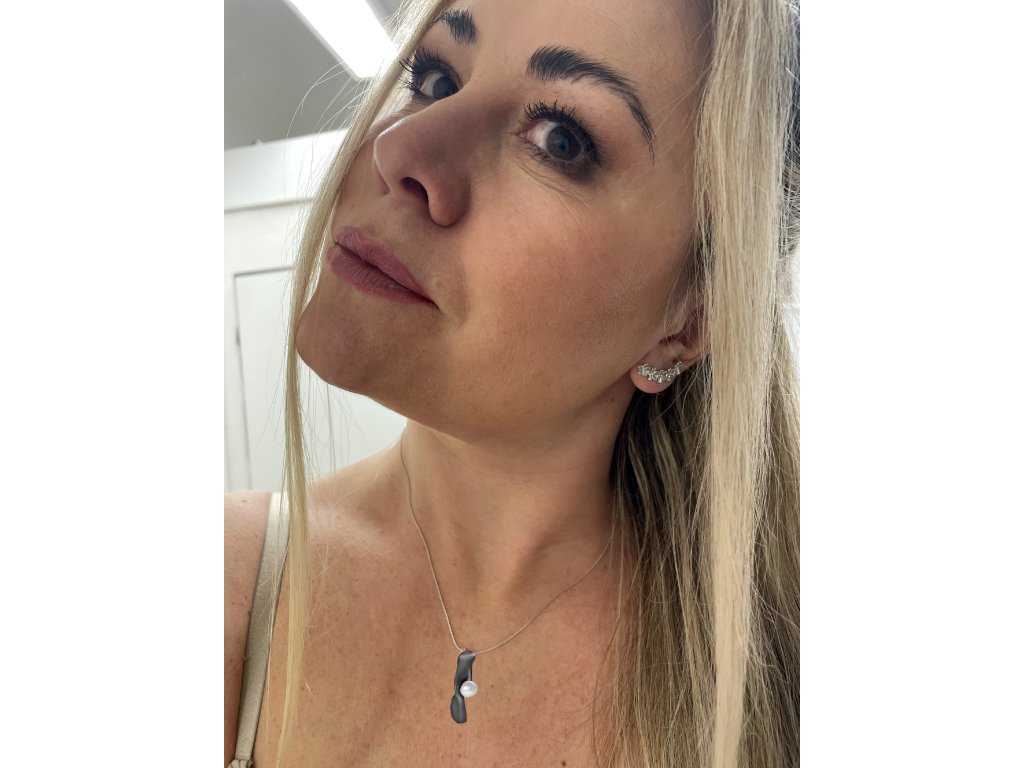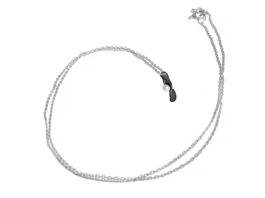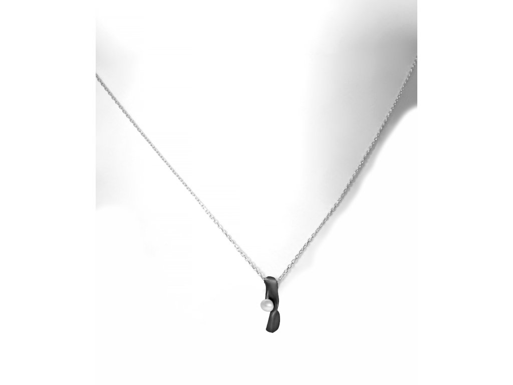 Stříbrný černý náhrdelník Split s perlou
