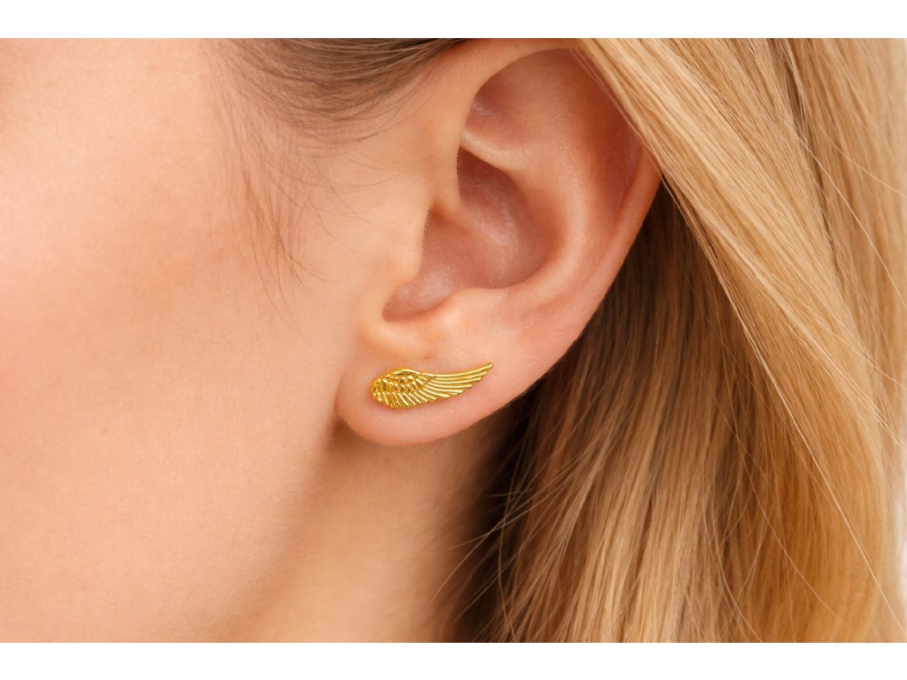 Náušnice jsou vyrobené ze stříbra 925/ 1000, pozlacené žlutým zlatem, váží 2 gramy. Délka křídla je 1, 5 cm. Můžete je nosit přes ucho nebo nechat viset.